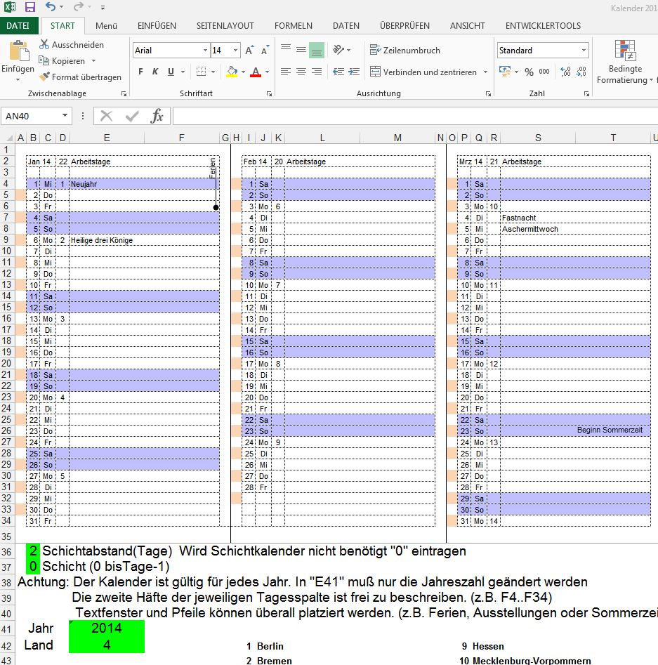 Beschreibung: Ein kleiner nett gemachter Taschenfaltkalender. Geschrieben für Excel 97-2003 als *.xls und Excel ab 2007 und höher.
